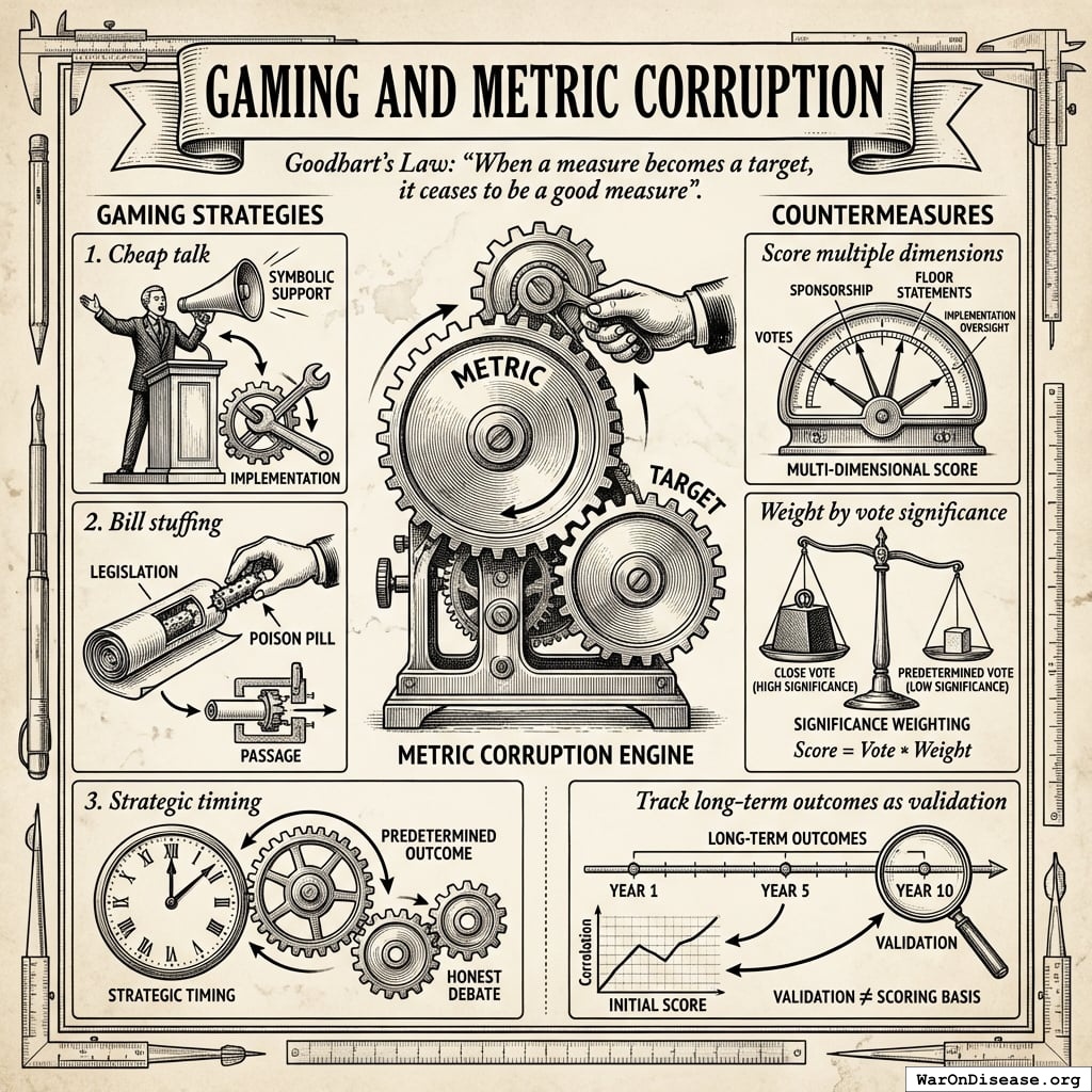 The third primitive property, funding from harmful sources, is therefore not merely a normative preference or a political strategy. Under the soft budget constraint dynamics described above, it is enough to achieve real resource reallocation (likely needed in practice). Without specifying the funding source, advocates win symbolic victories while real resources continue flowing to Olsonian programs. With specified reallocation, the IAB creates genuine redistribution from net-negative to net-positive uses, constrained only by political will rather than by the illusion of unlimited budgetary capacity.