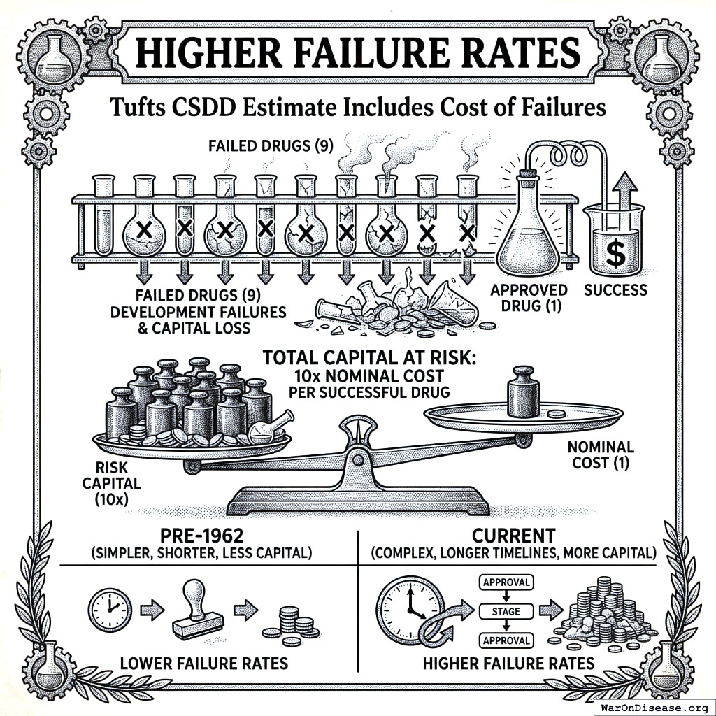 • Pre-1962 failure rates were lower. Simpler approval, shorter timelines, less money on fire.