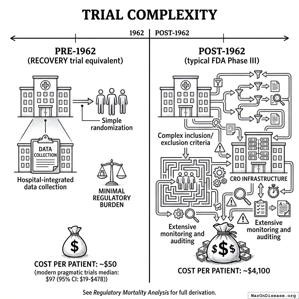 • Cost per patient: ~$50 (modern pragmatic trials median: $97 (95% CI: $19-$478)88)