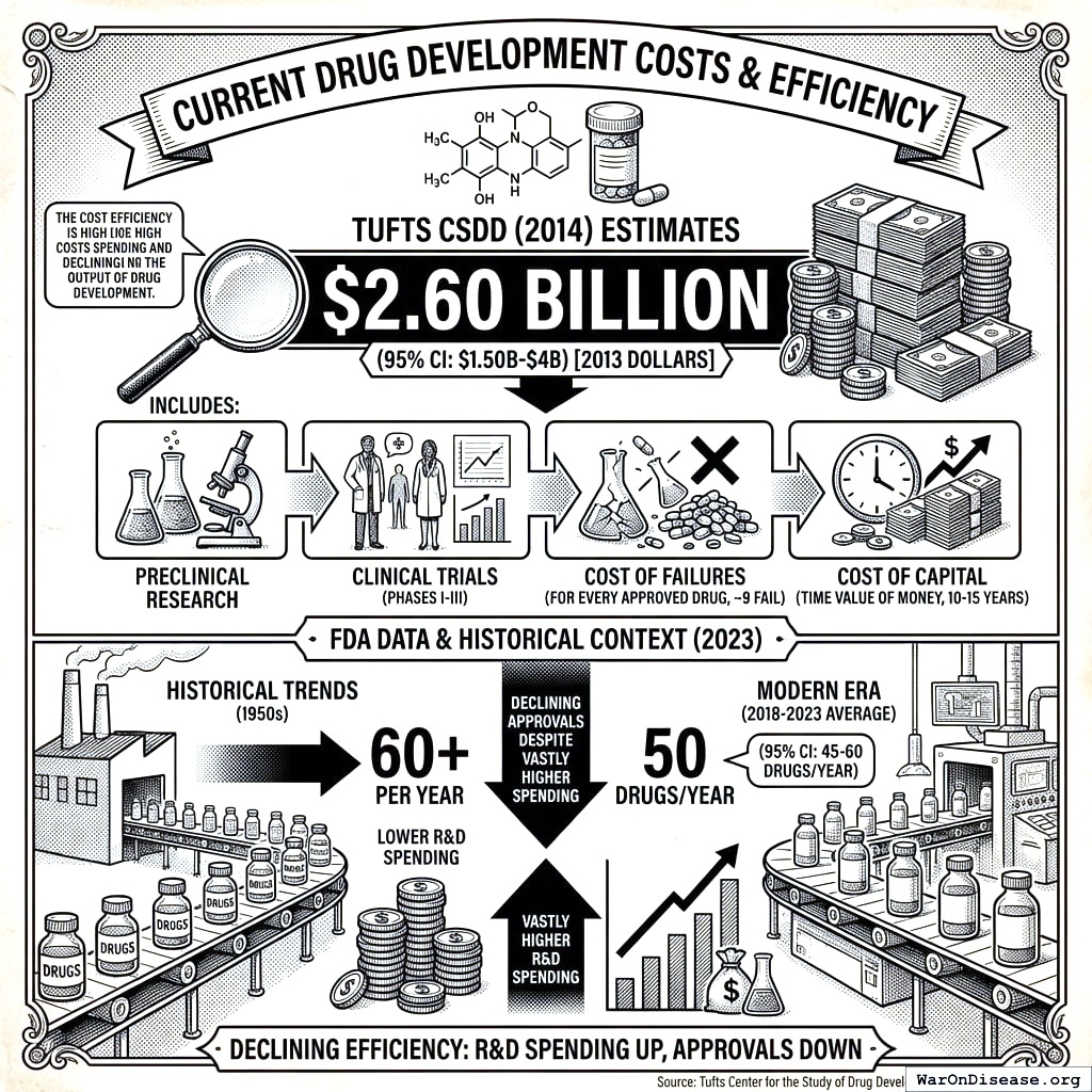 3. Current cost ($2.6B in 2013 dollars, Tufts CSDD)