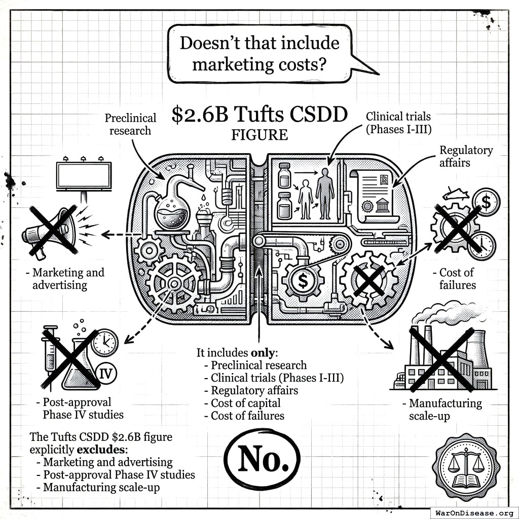 What’s in the 2.6 billion: research, trials, failures. What’s not in it: marketing, manufacturing, executive bonuses. The real number is higher. Everything is worse than you think.