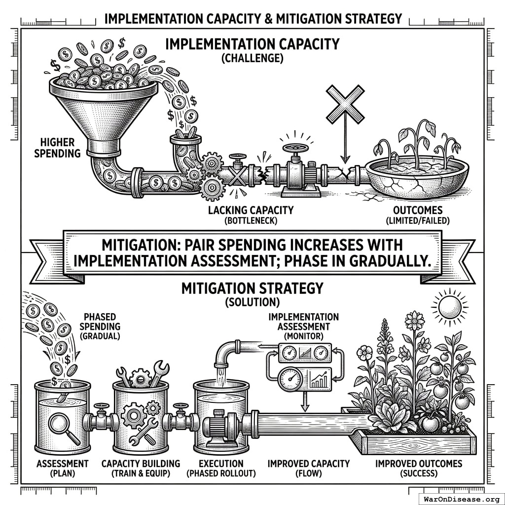 The result: systematic overinvestment in low-return categories and underinvestment in high-return categories. Historical examples demonstrate the scale of missed opportunities: the smallpox eradication campaign returned an estimated 450:1 ROI102, yet similar high-return public health investments remain chronically underfunded.