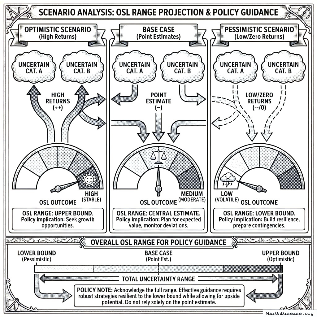 Value of Information (VOI): Expected benefit of additional research on uncertain categories. High-VOI categories warrant pilot funding.