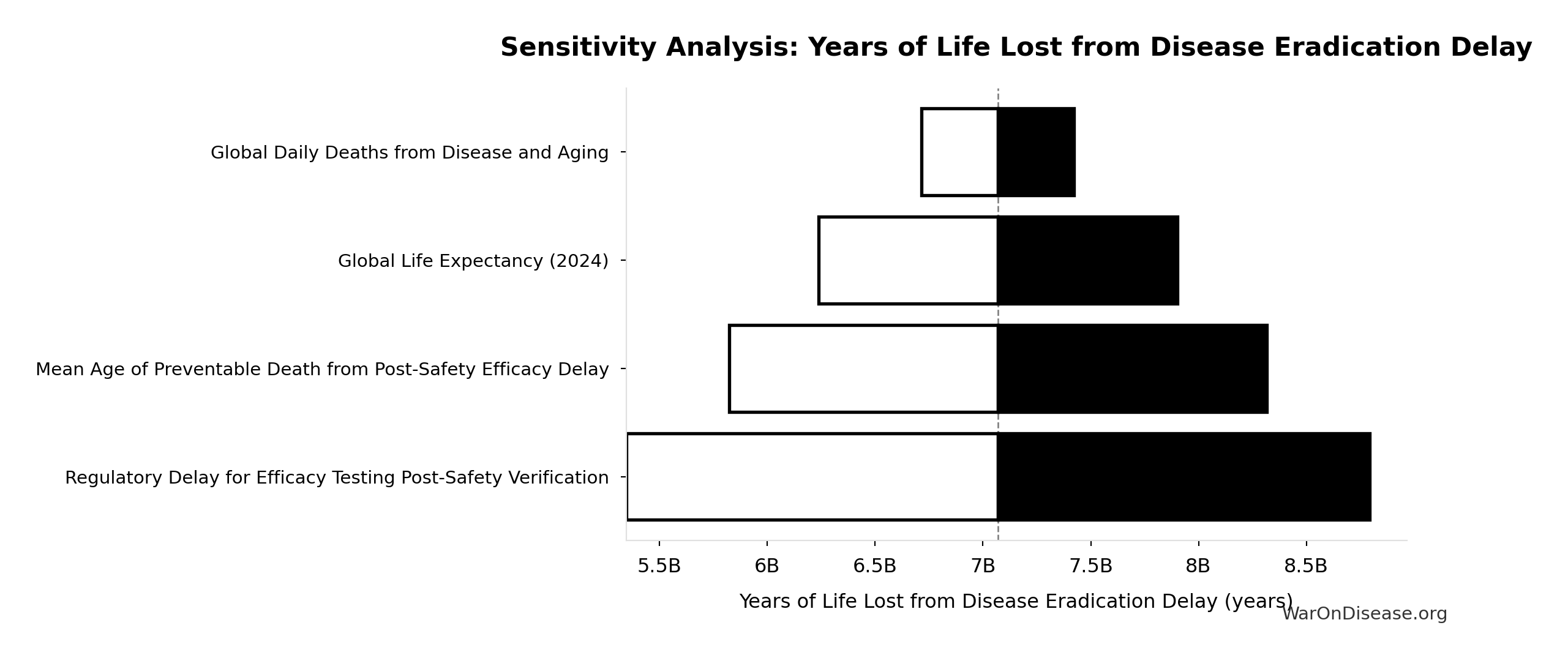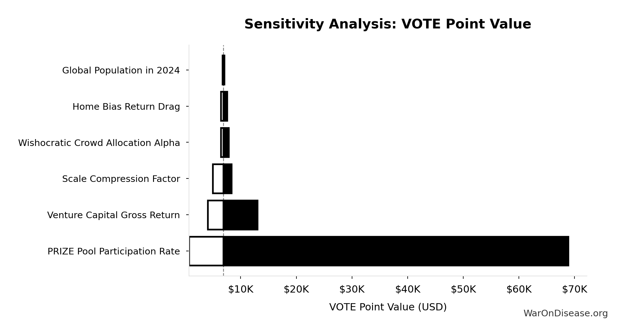 What this means: This estimate is highly uncertain. The true value likely falls between 3 QALYs/death and 10 QALYs/death (±70%). This represents a very wide range that our Monte Carlo simulations account for when calculating overall uncertainty in the results.