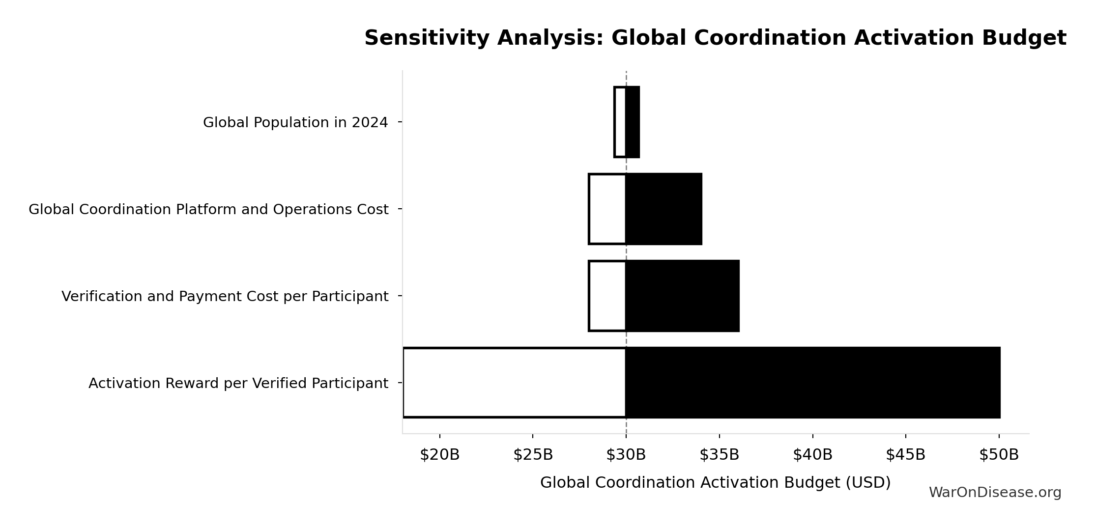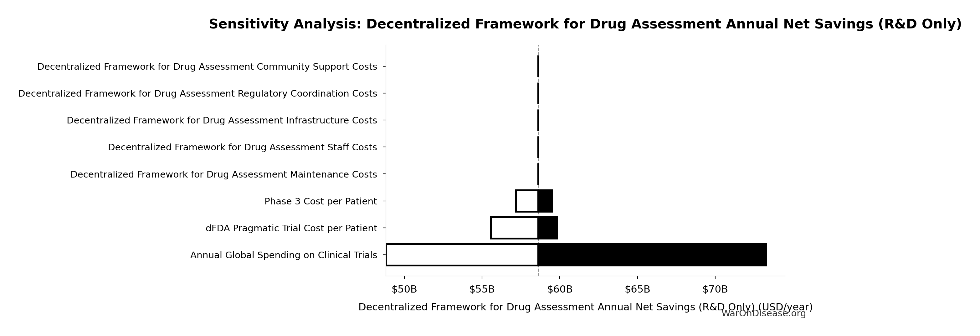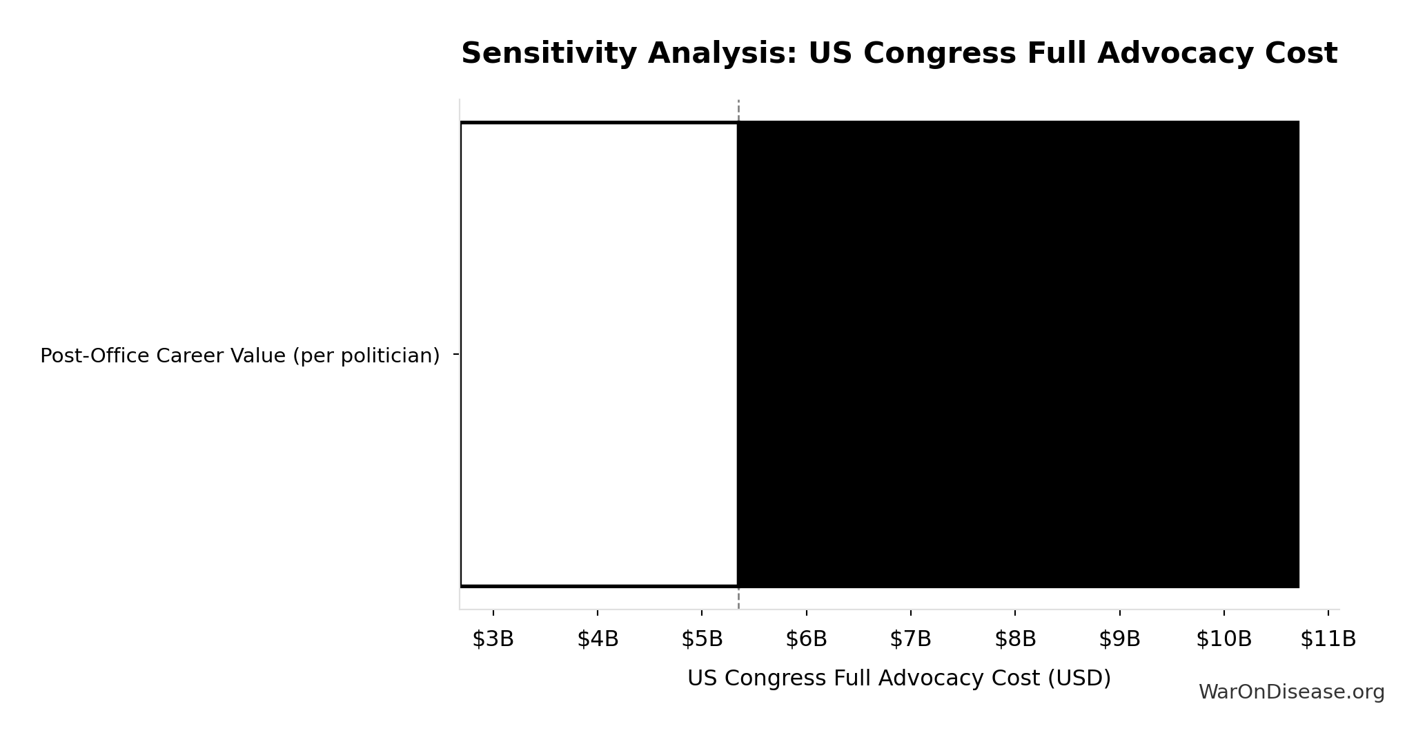 What this means: This estimate is highly uncertain. The true value likely falls between $20 million and $150 million (±65%). This represents a very wide range that our Monte Carlo simulations account for when calculating overall uncertainty in the results.
