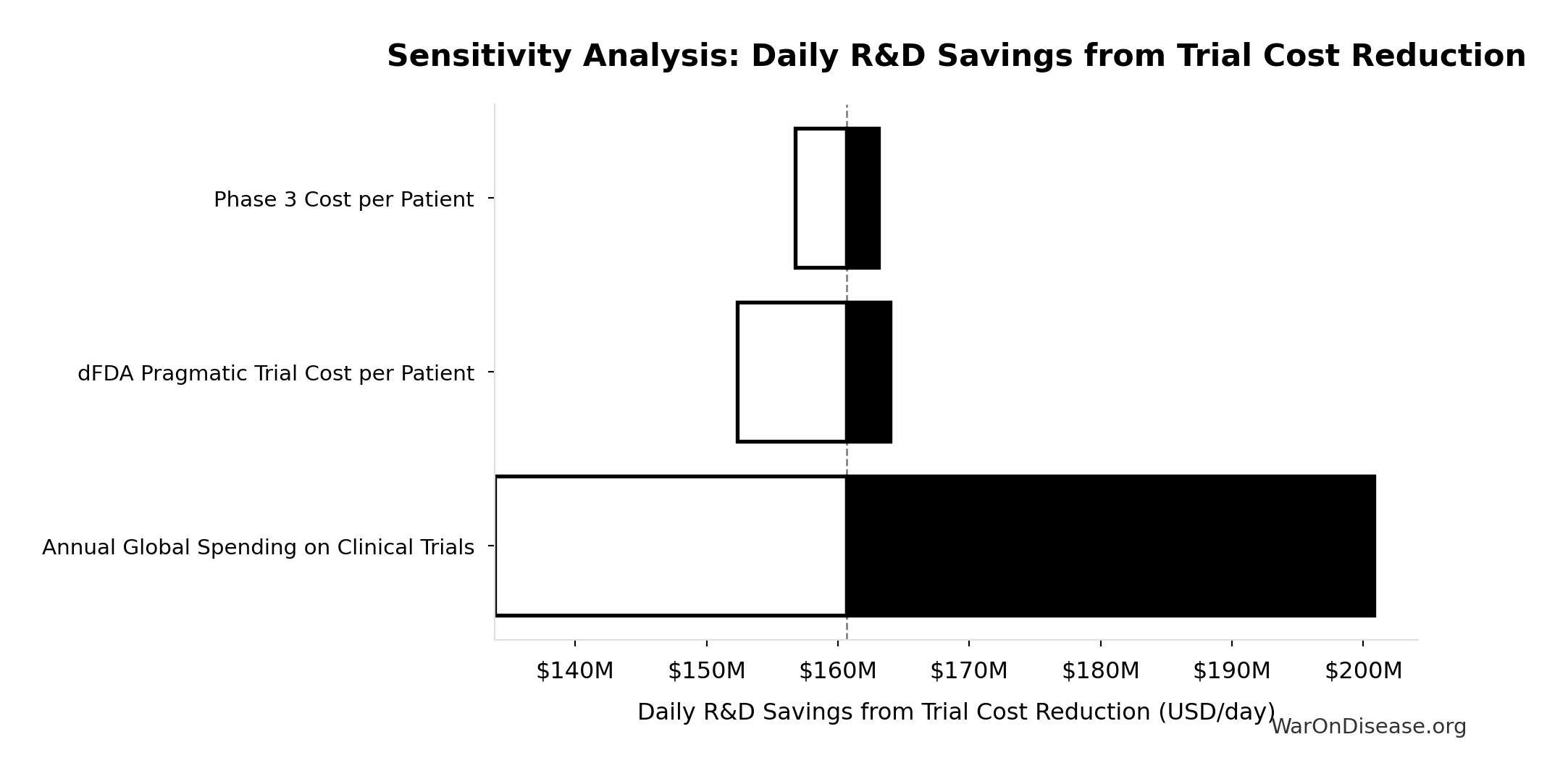 Average Phase 2/3 efficacy testing cost per drug that pharma must fund (~60% of total drug development cost)
