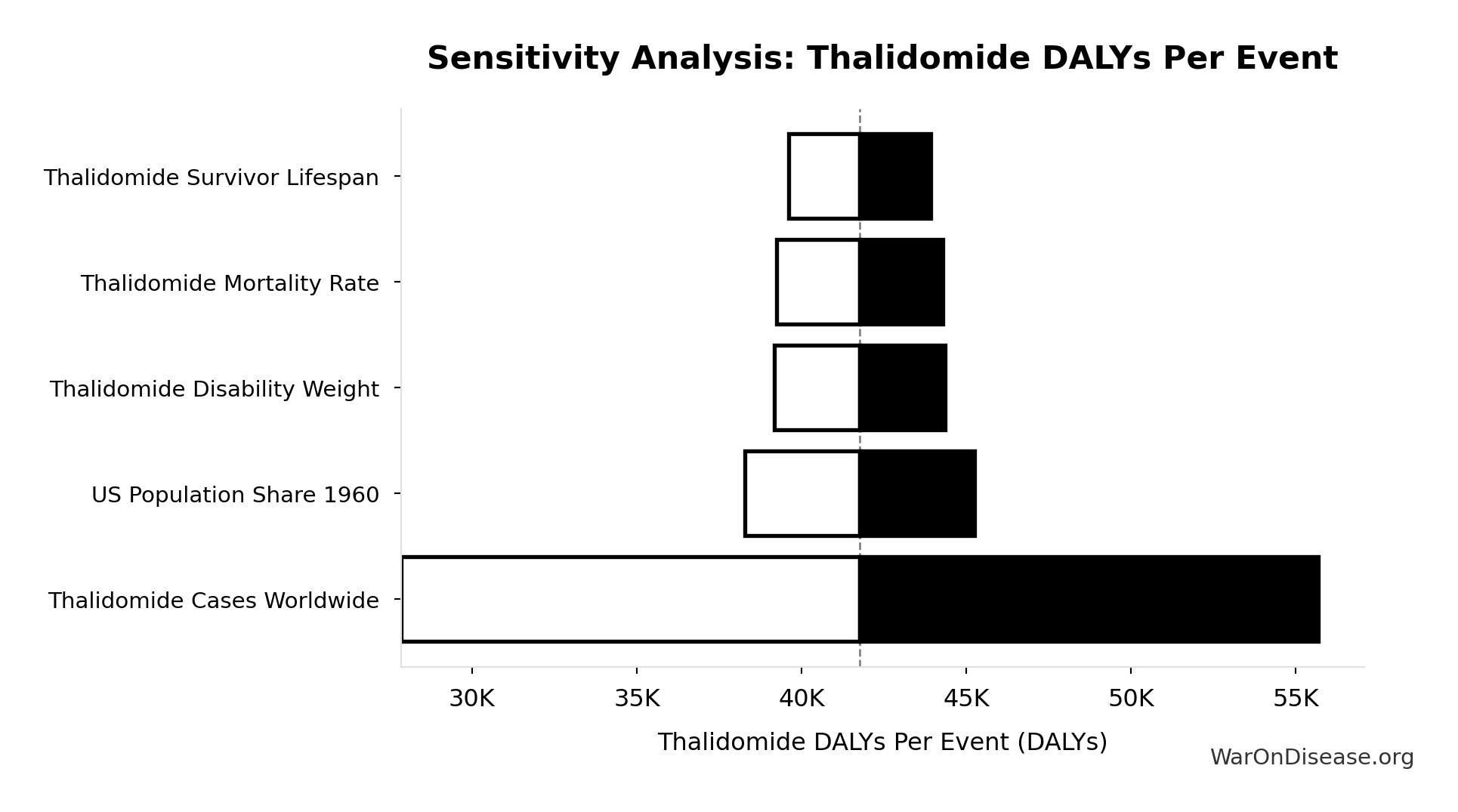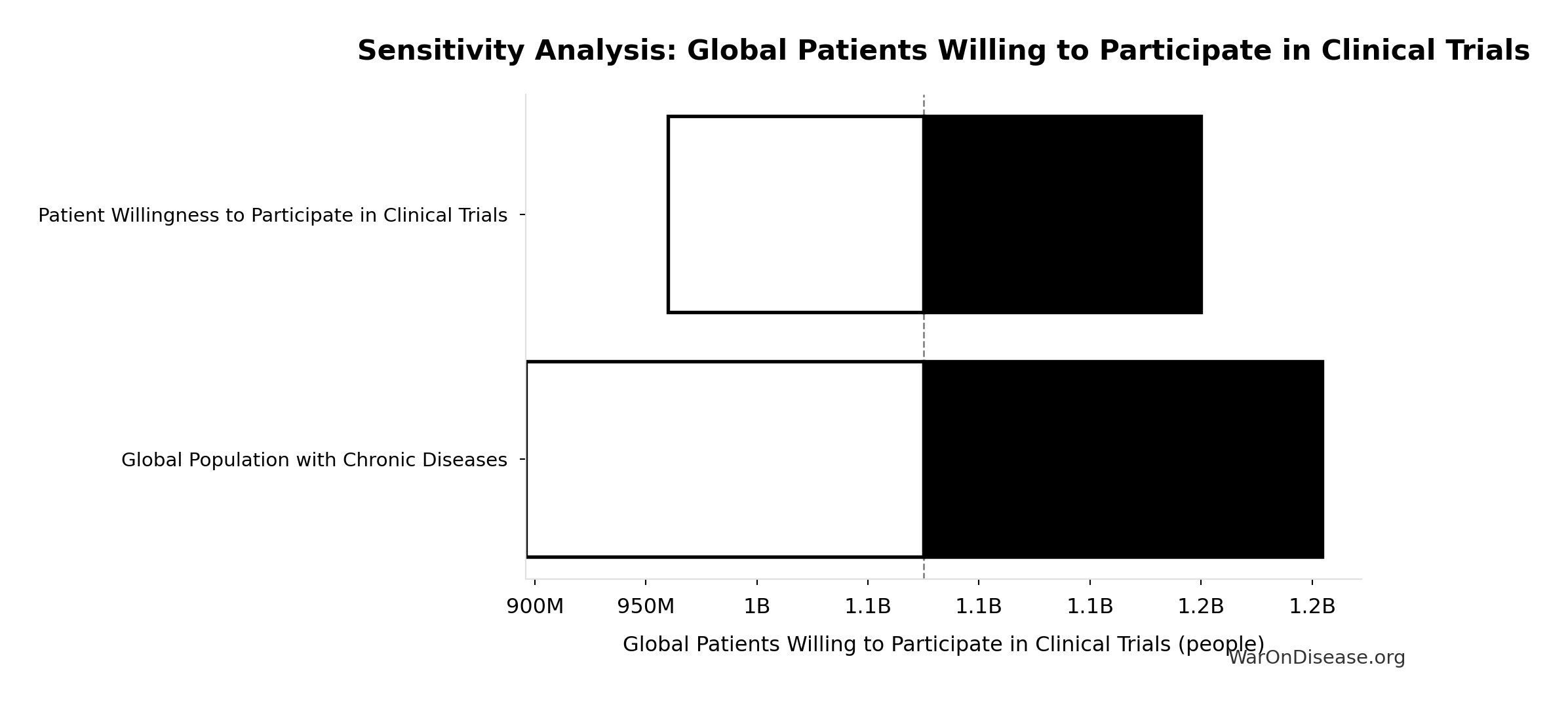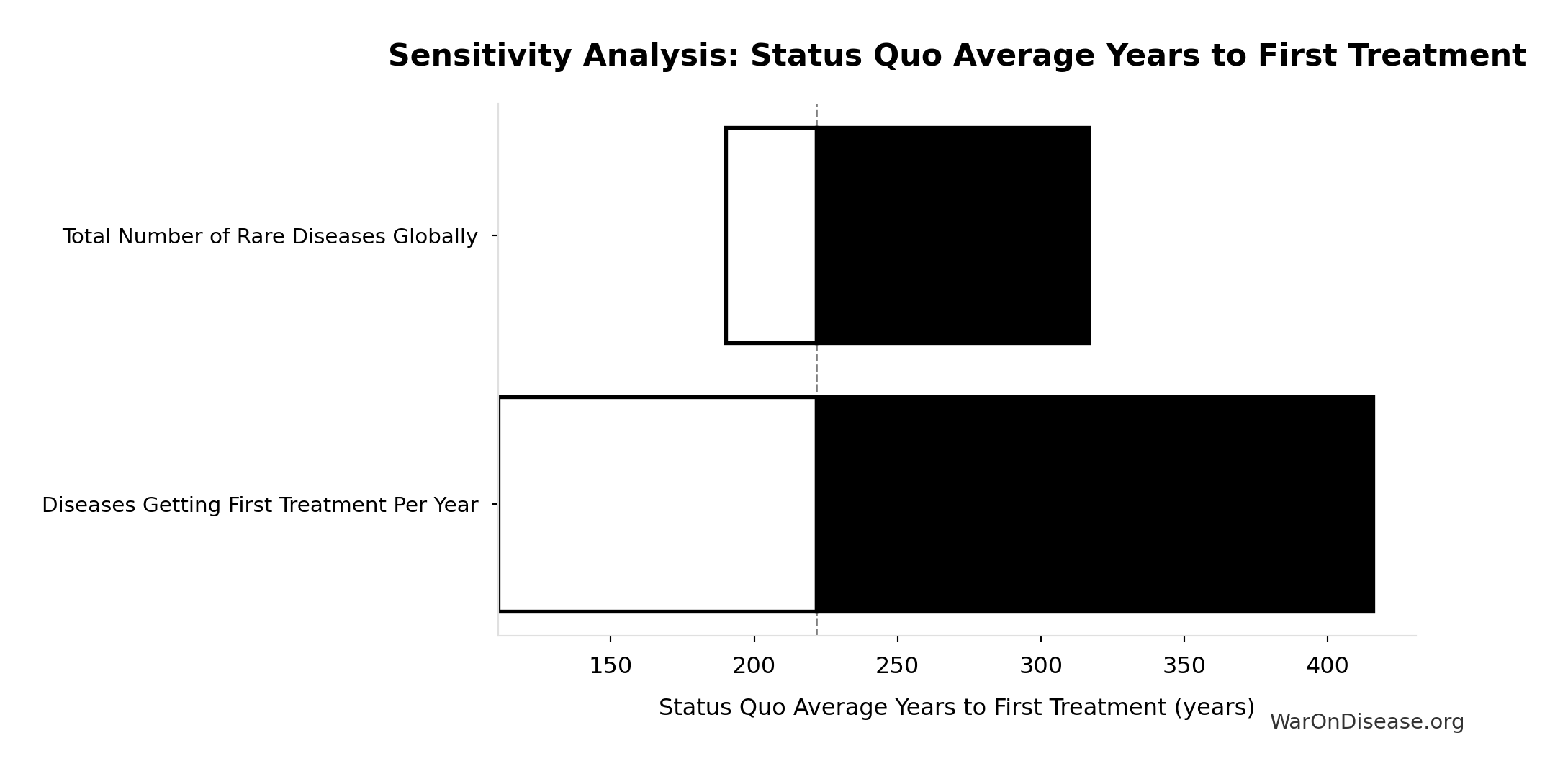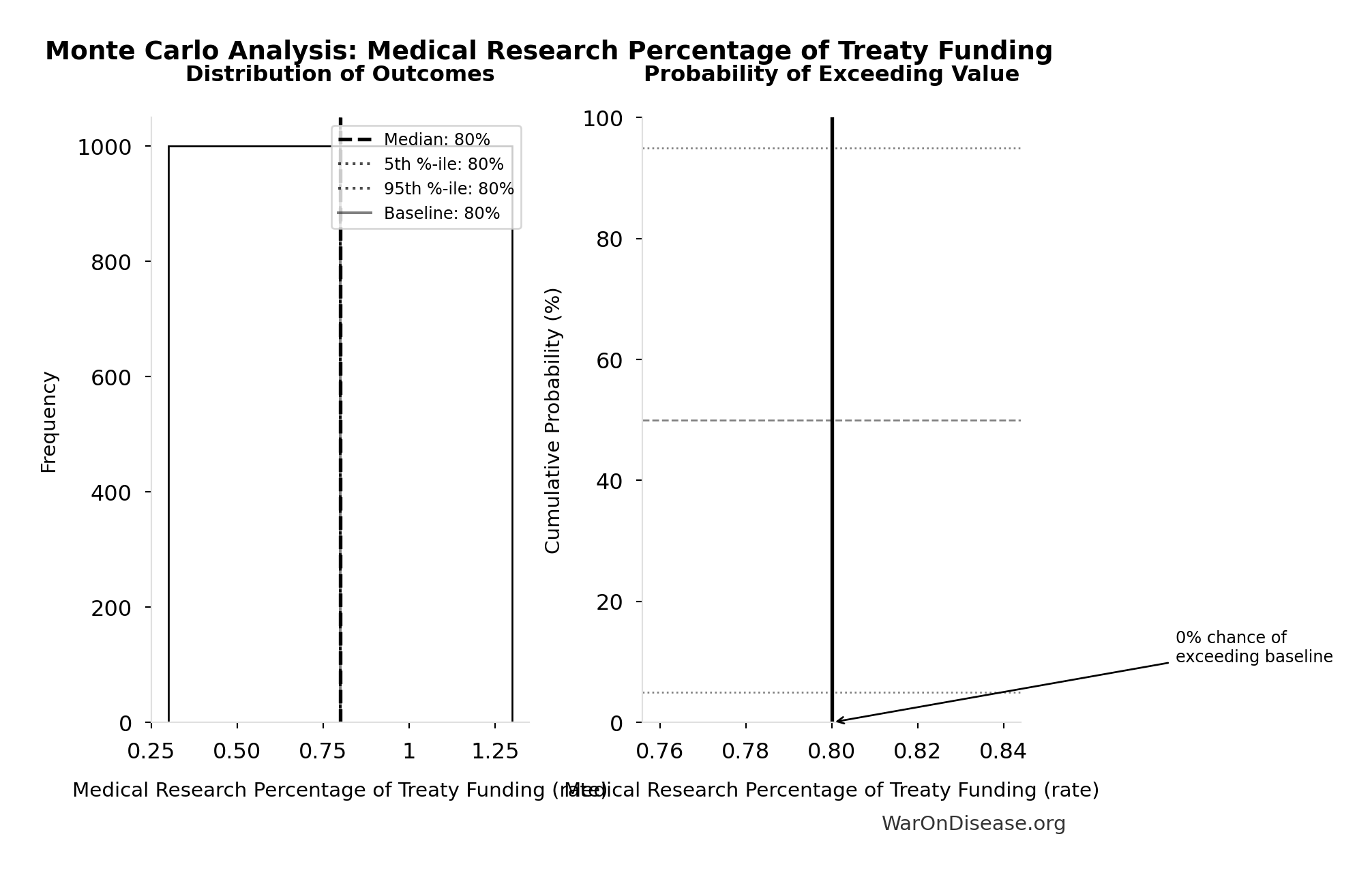 What this means: This estimate has moderate uncertainty. The true value likely falls between 800 diseases and 1,200 diseases (±20%). This represents a reasonable range that our Monte Carlo simulations account for when calculating overall uncertainty in the results.