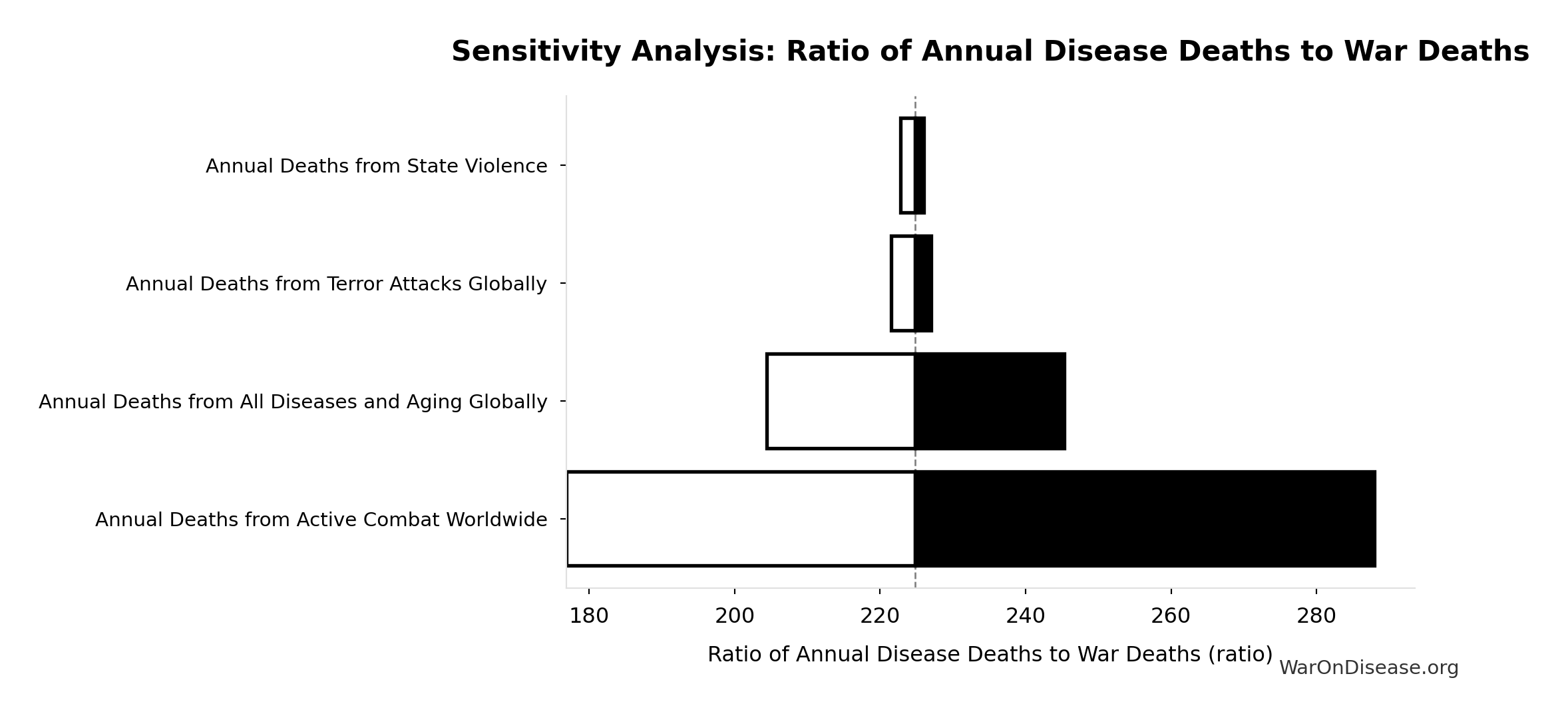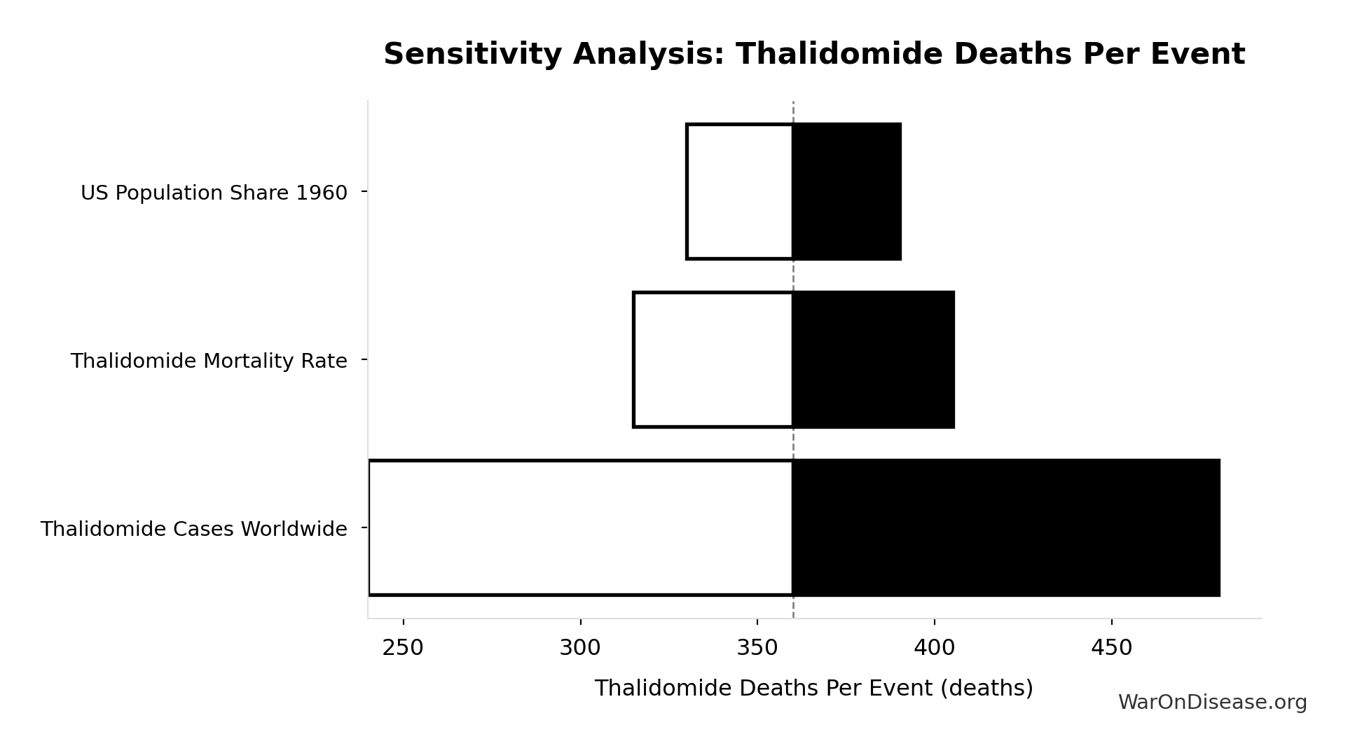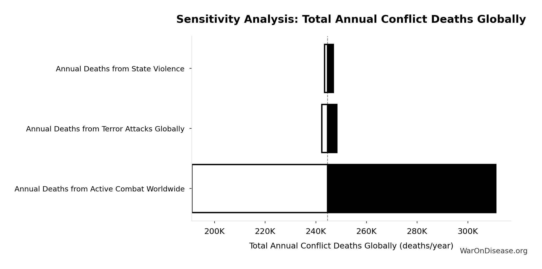 What this means: This estimate has moderate uncertainty. The true value likely falls between 200 million deaths and 340 million deaths (±23%). This represents a reasonable range that our Monte Carlo simulations account for when calculating overall uncertainty in the results.