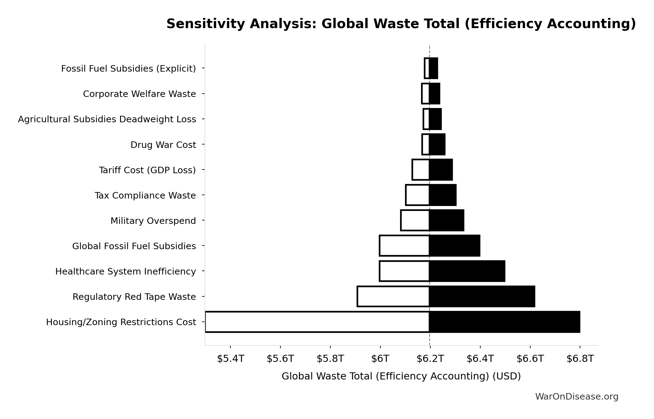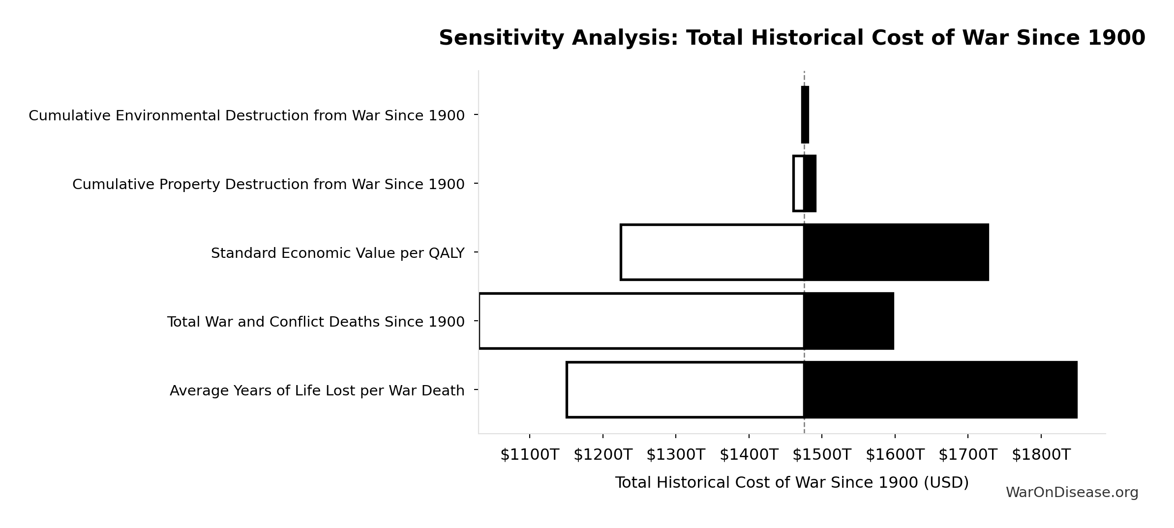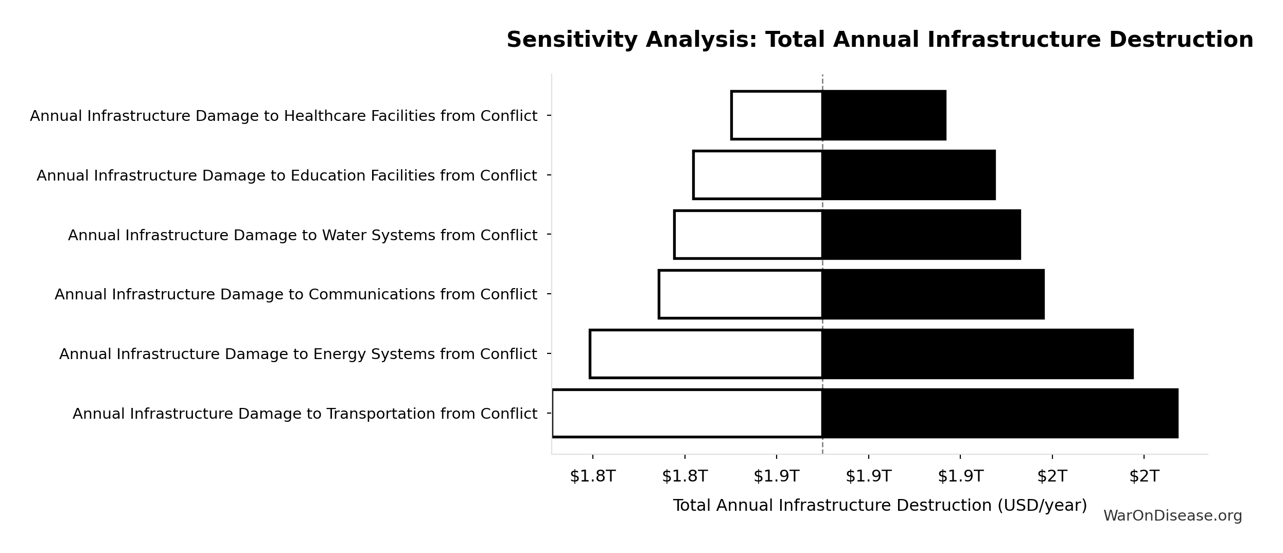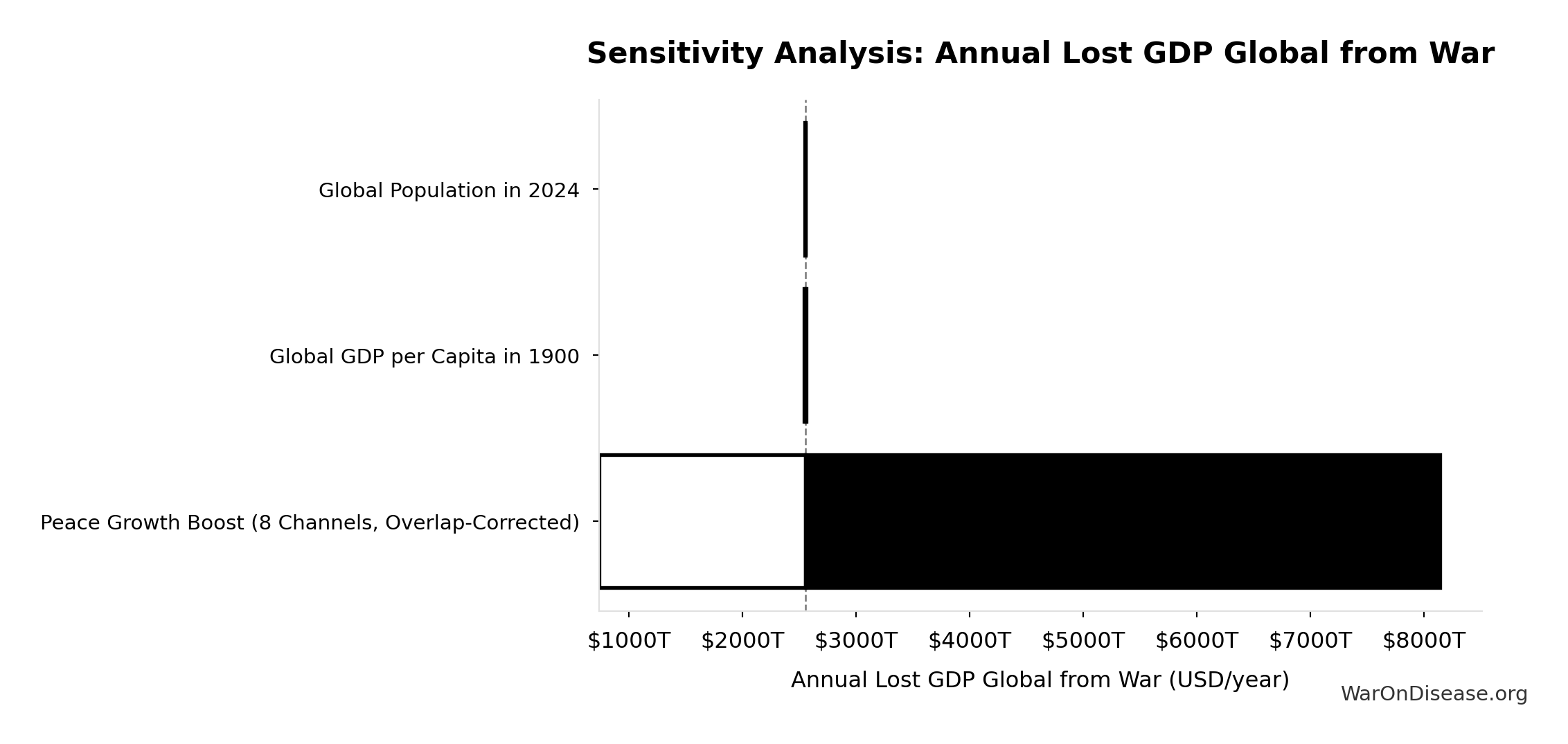 What this means: This estimate is highly uncertain. The true value likely falls between $2 trillion and $10 trillion (±80%). This represents a very wide range that our Monte Carlo simulations account for when calculating overall uncertainty in the results.