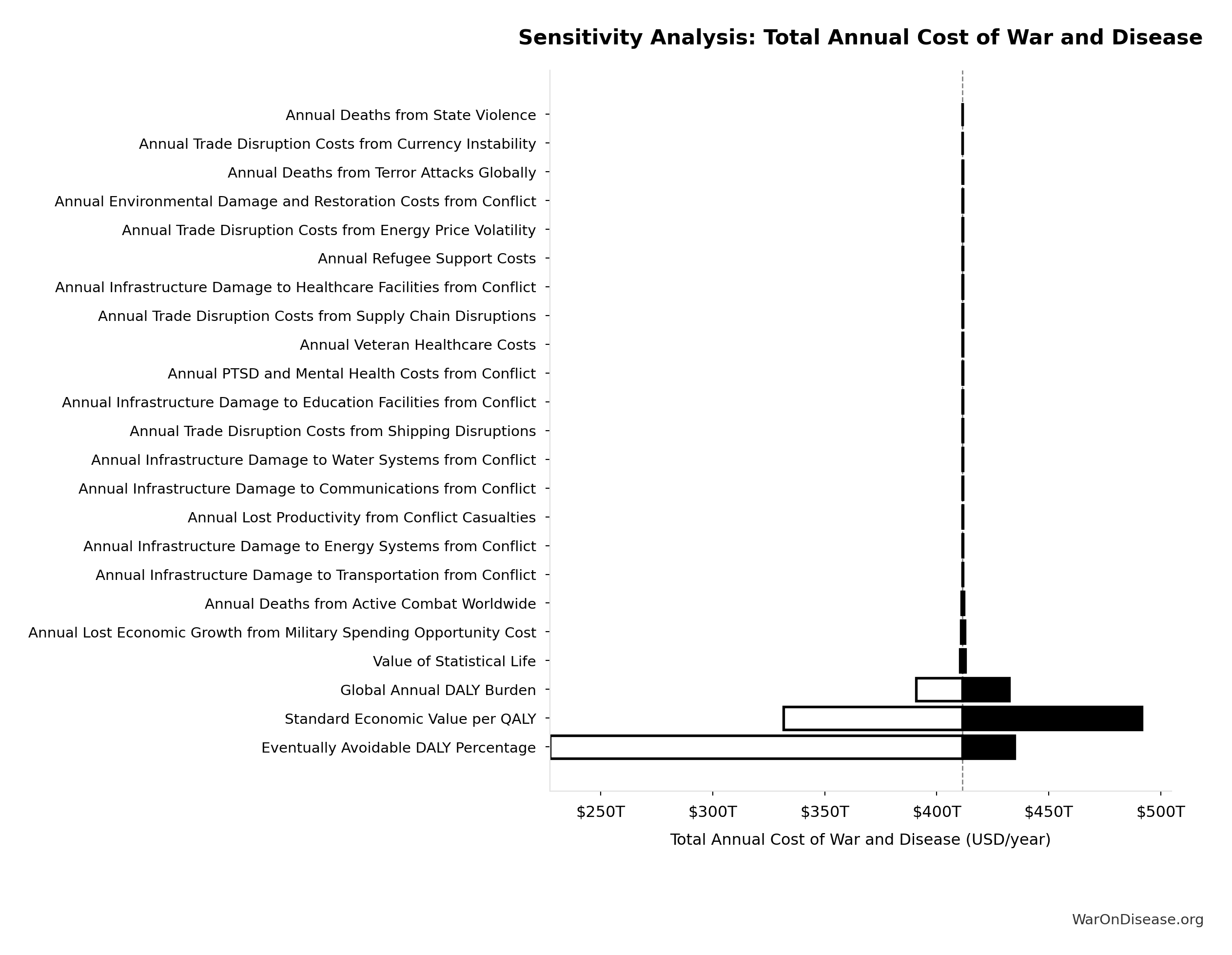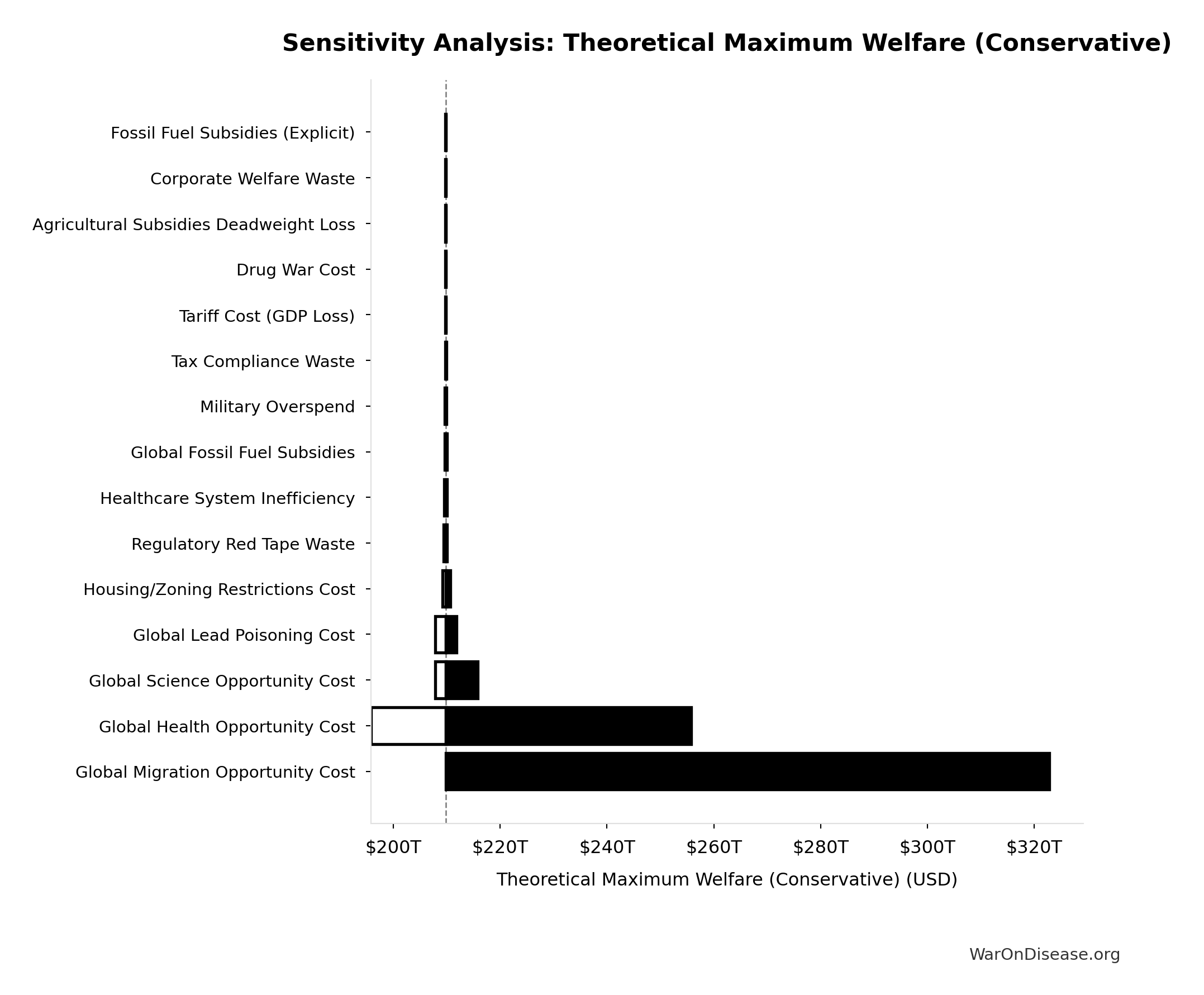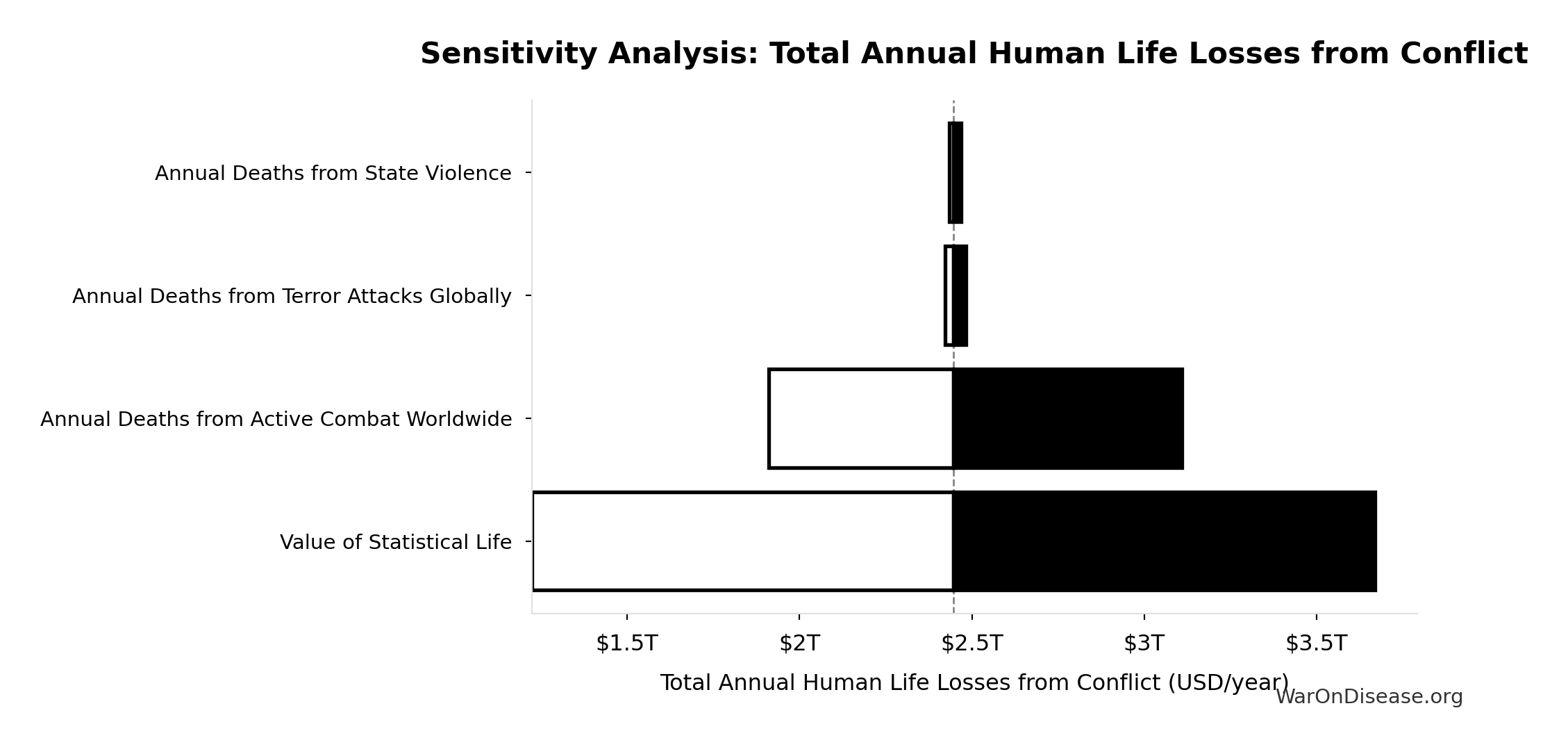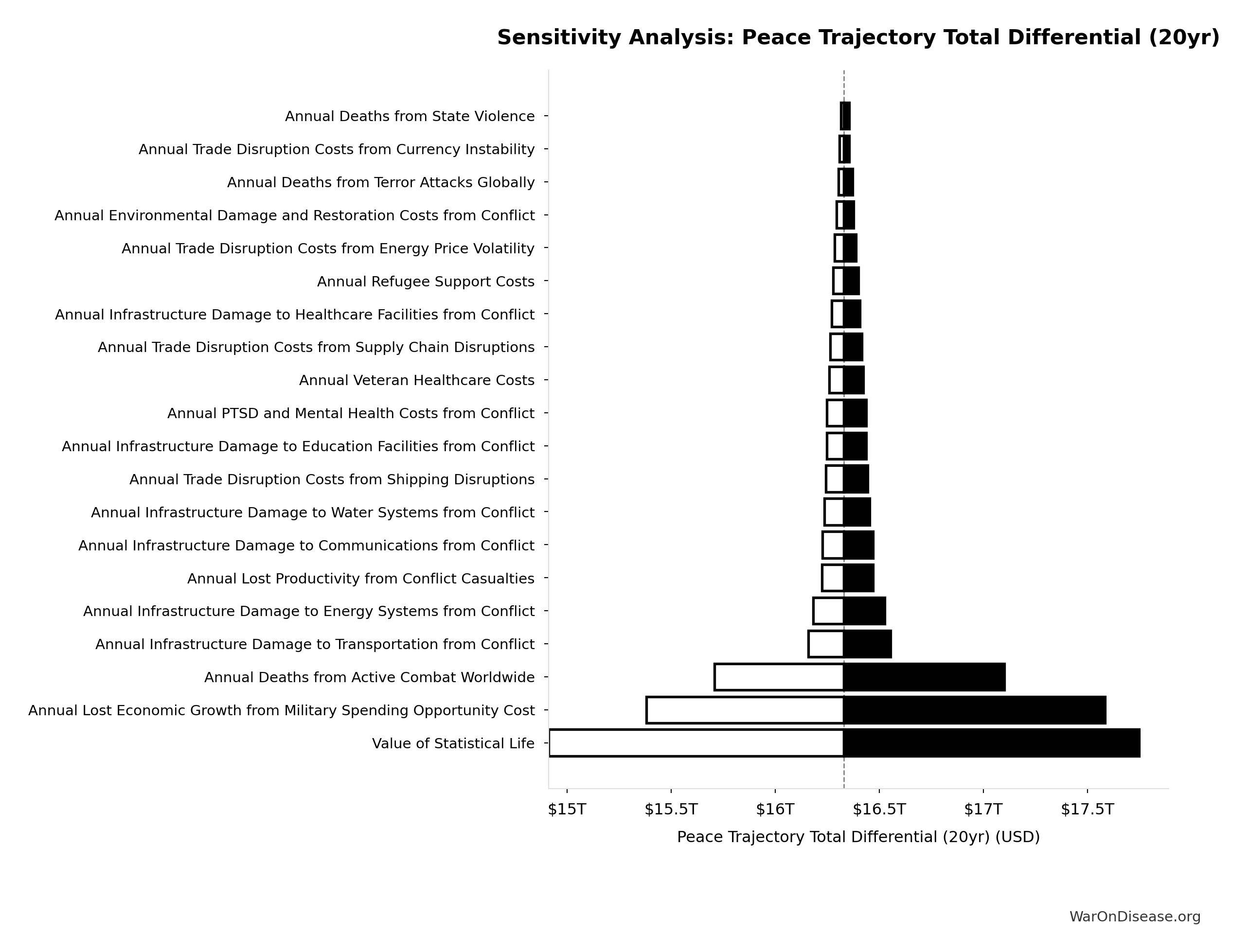 What this means: This estimate is highly uncertain. The true value likely falls between $2 trillion and $10 trillion (±80%). This represents a very wide range that our Monte Carlo simulations account for when calculating overall uncertainty in the results.
