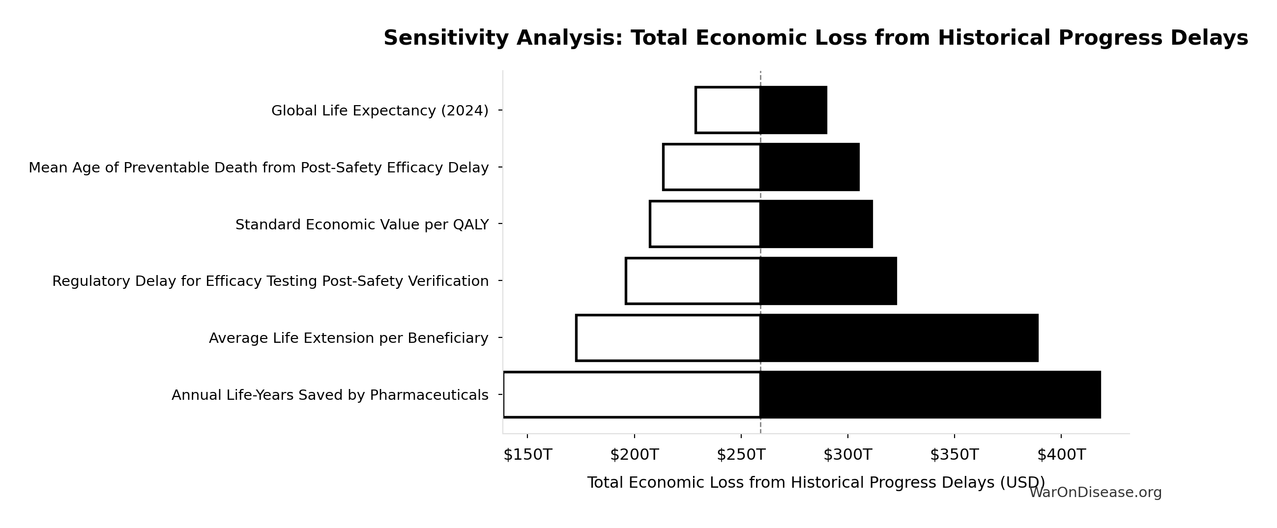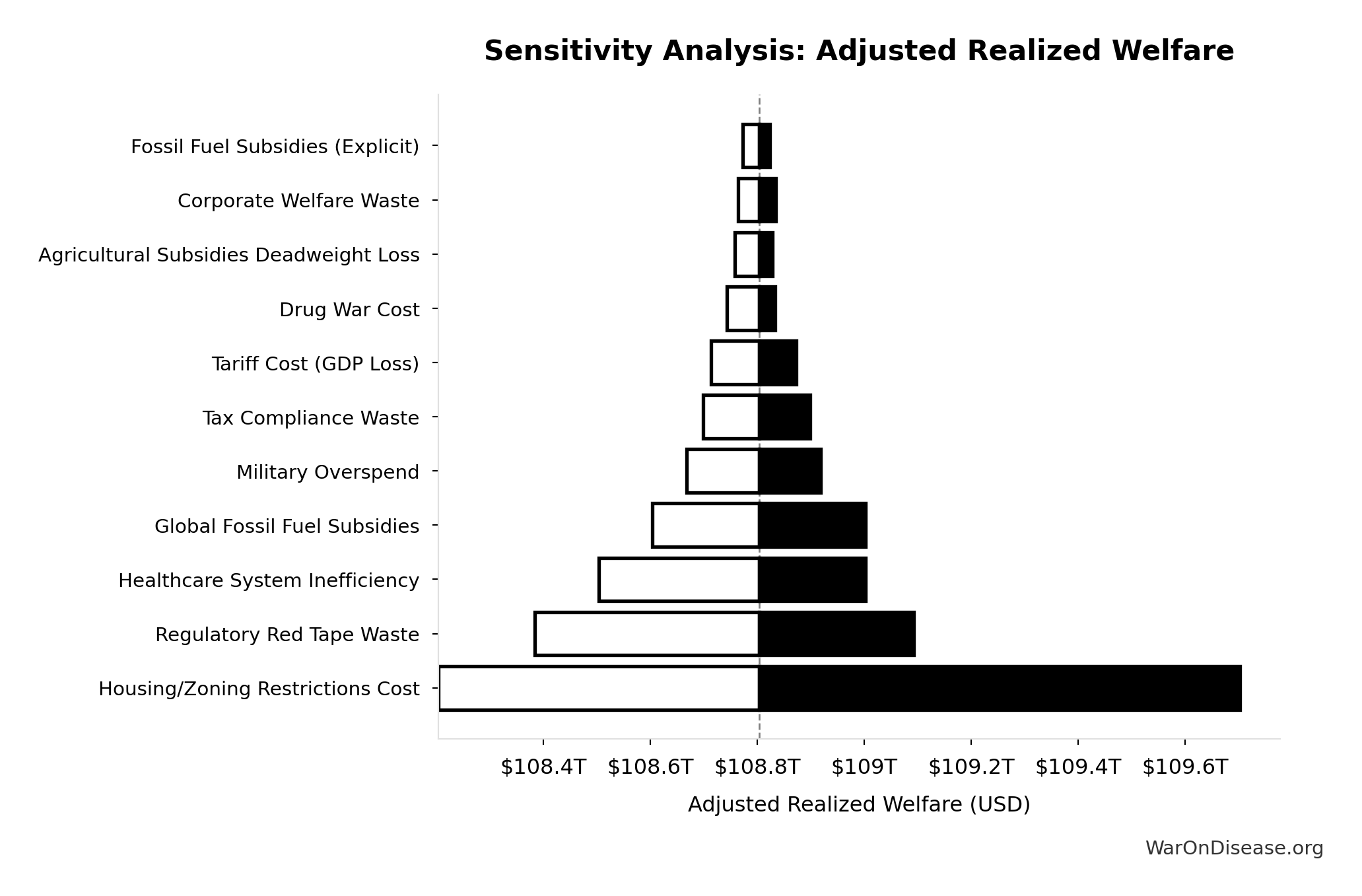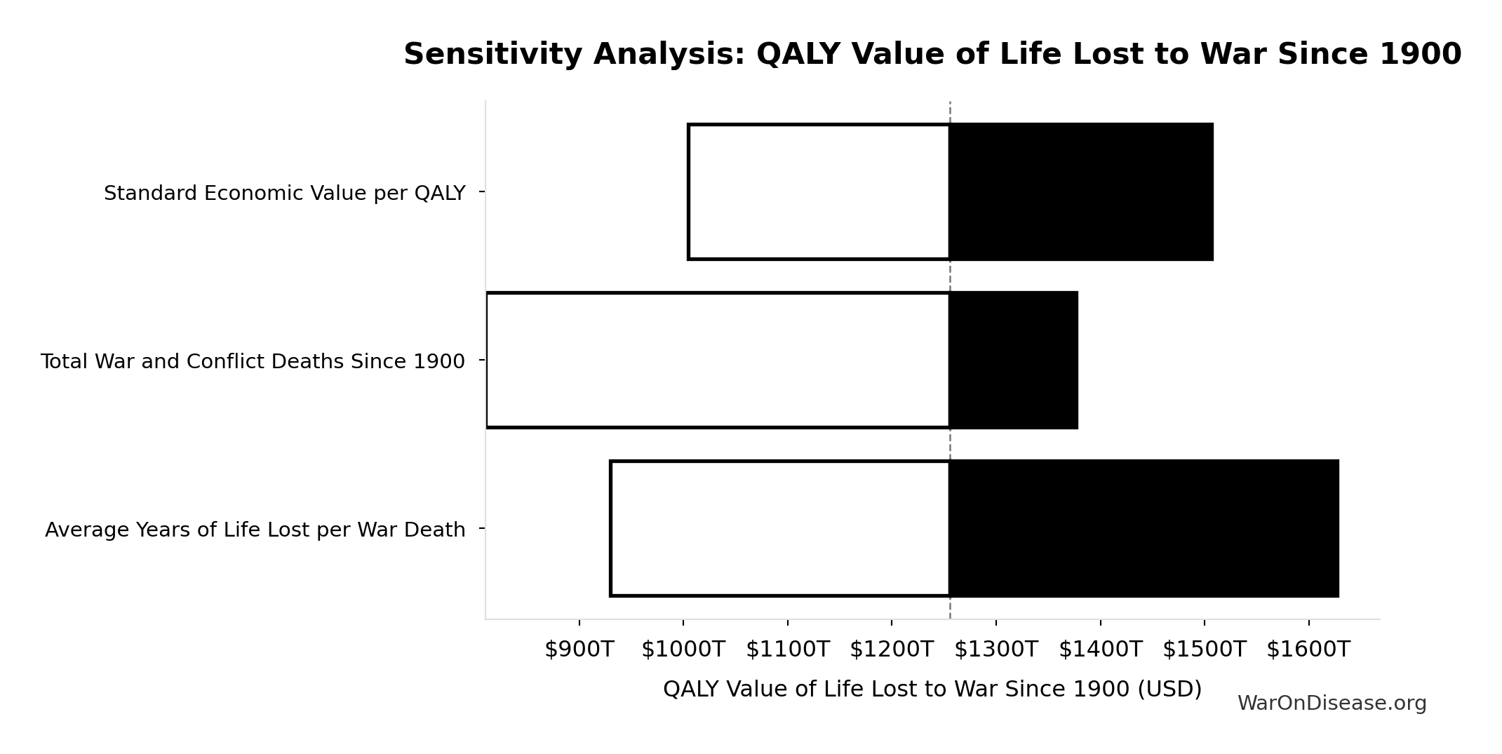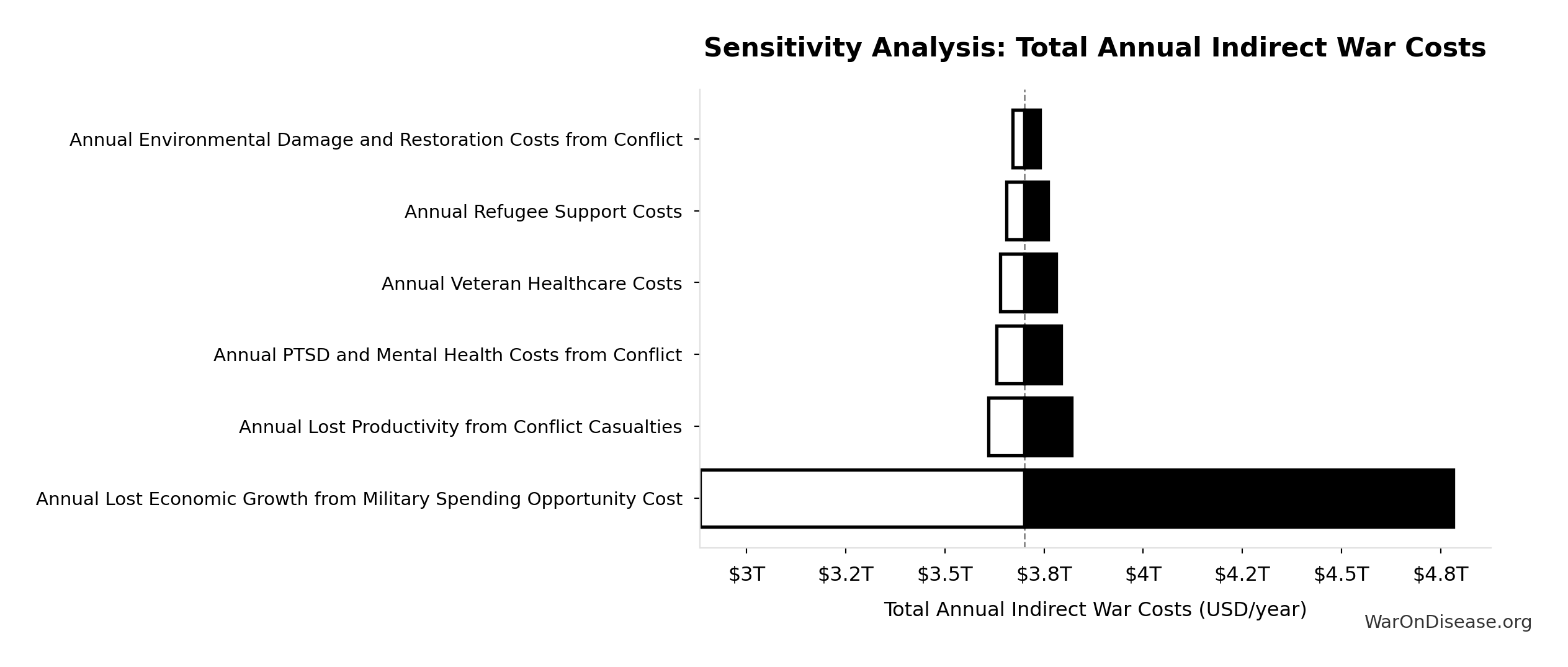 What this means: This estimate is highly uncertain. The true value likely falls between $2 trillion and $10 trillion (±80%). This represents a very wide range that our Monte Carlo simulations account for when calculating overall uncertainty in the results.
