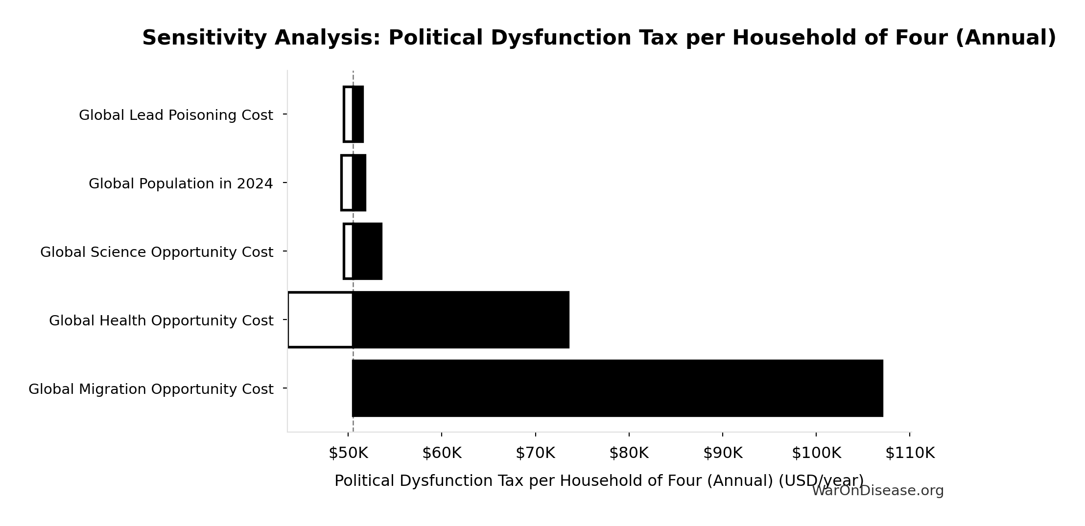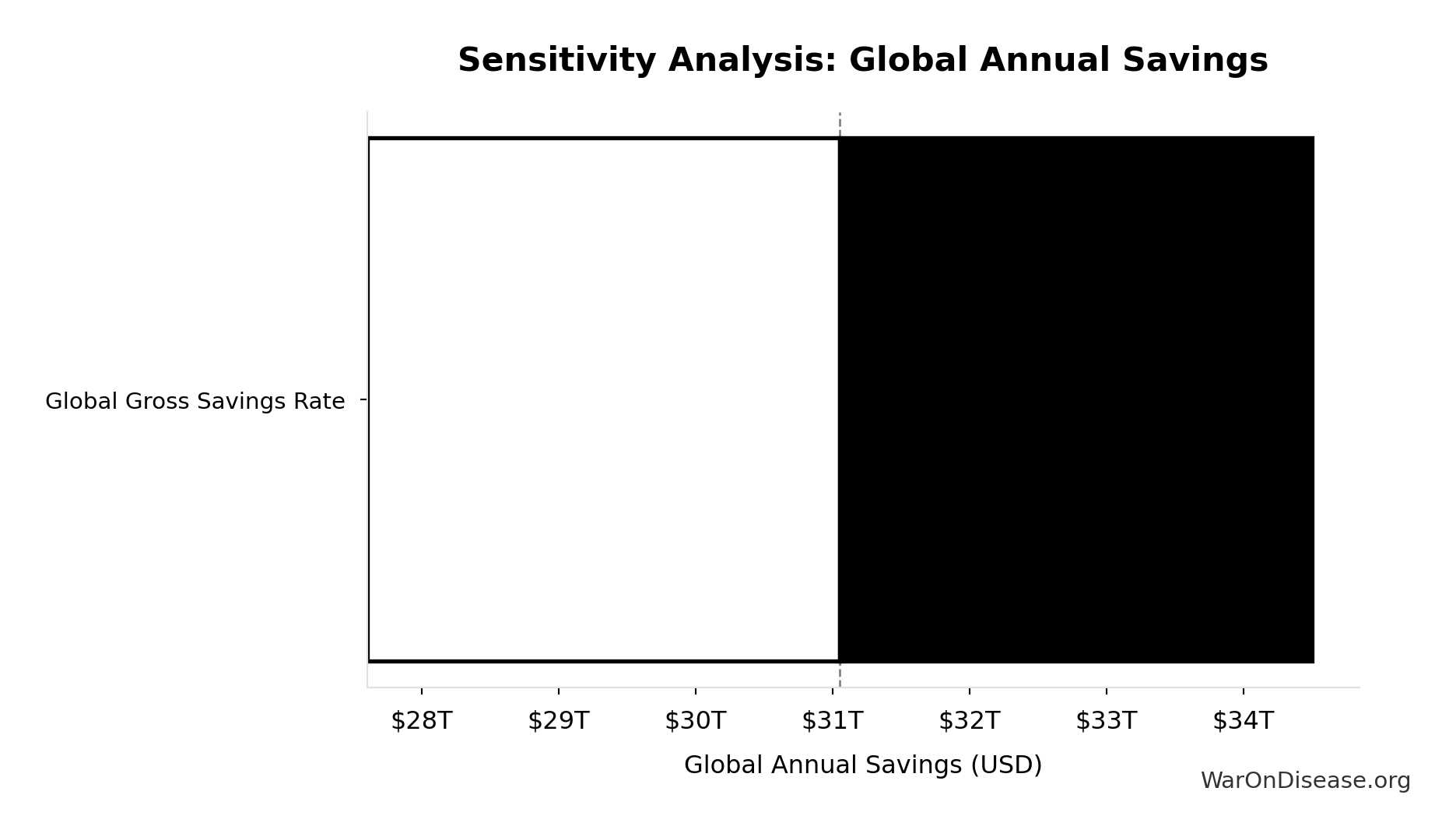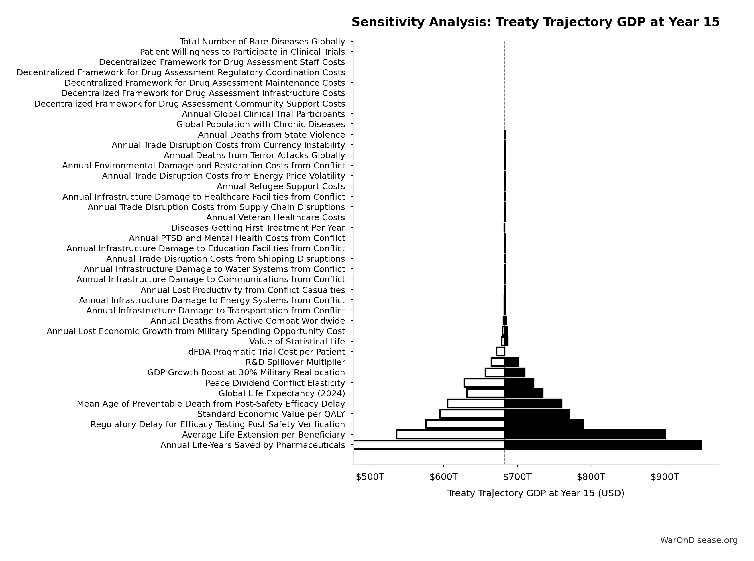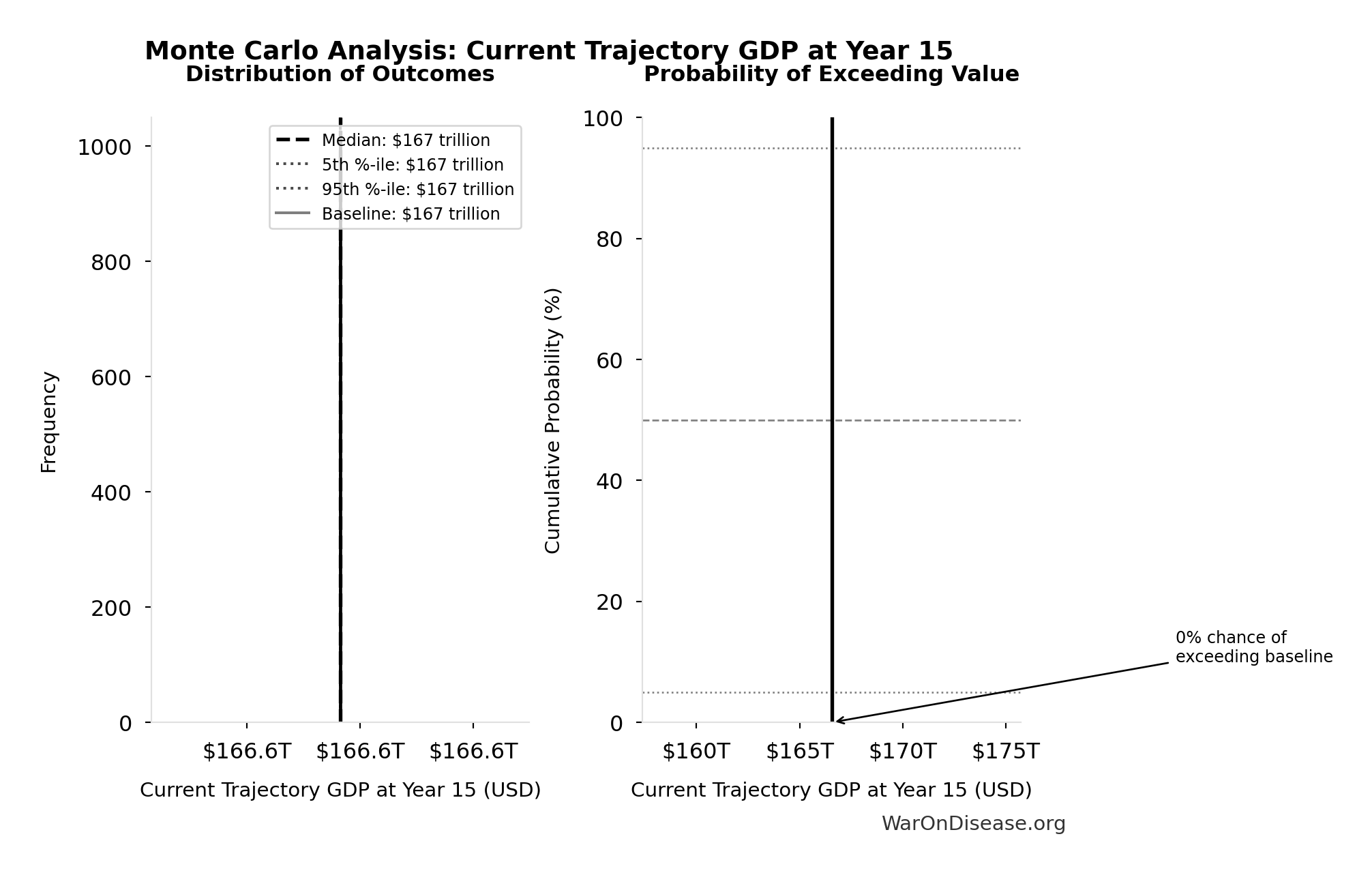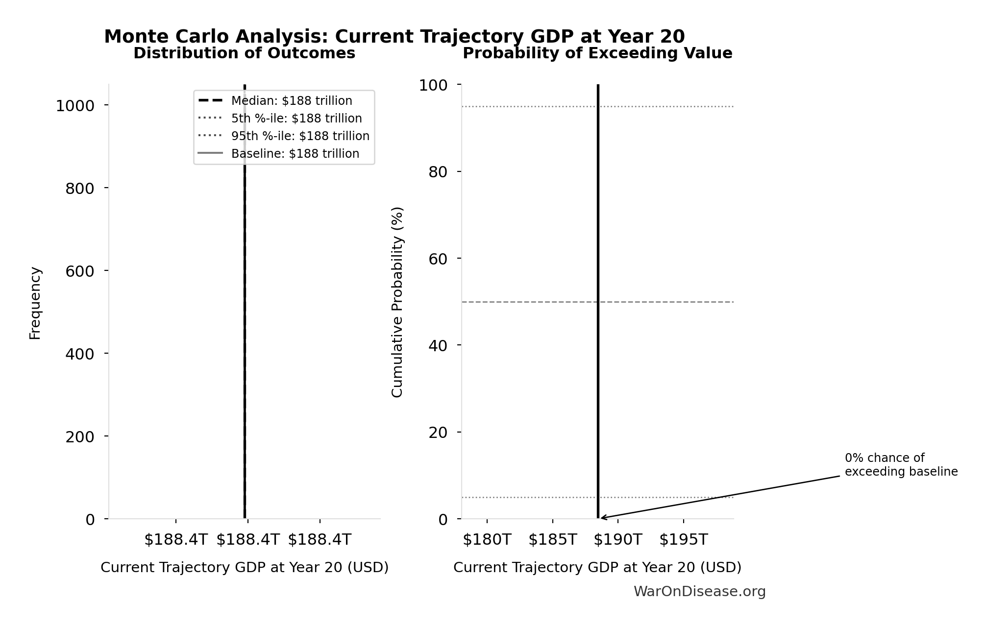 What this means: There’s significant uncertainty here. The true value likely falls between $30 trillion and $60 trillion (±33%). This represents a wide range that our Monte Carlo simulations account for when calculating overall uncertainty in the results.