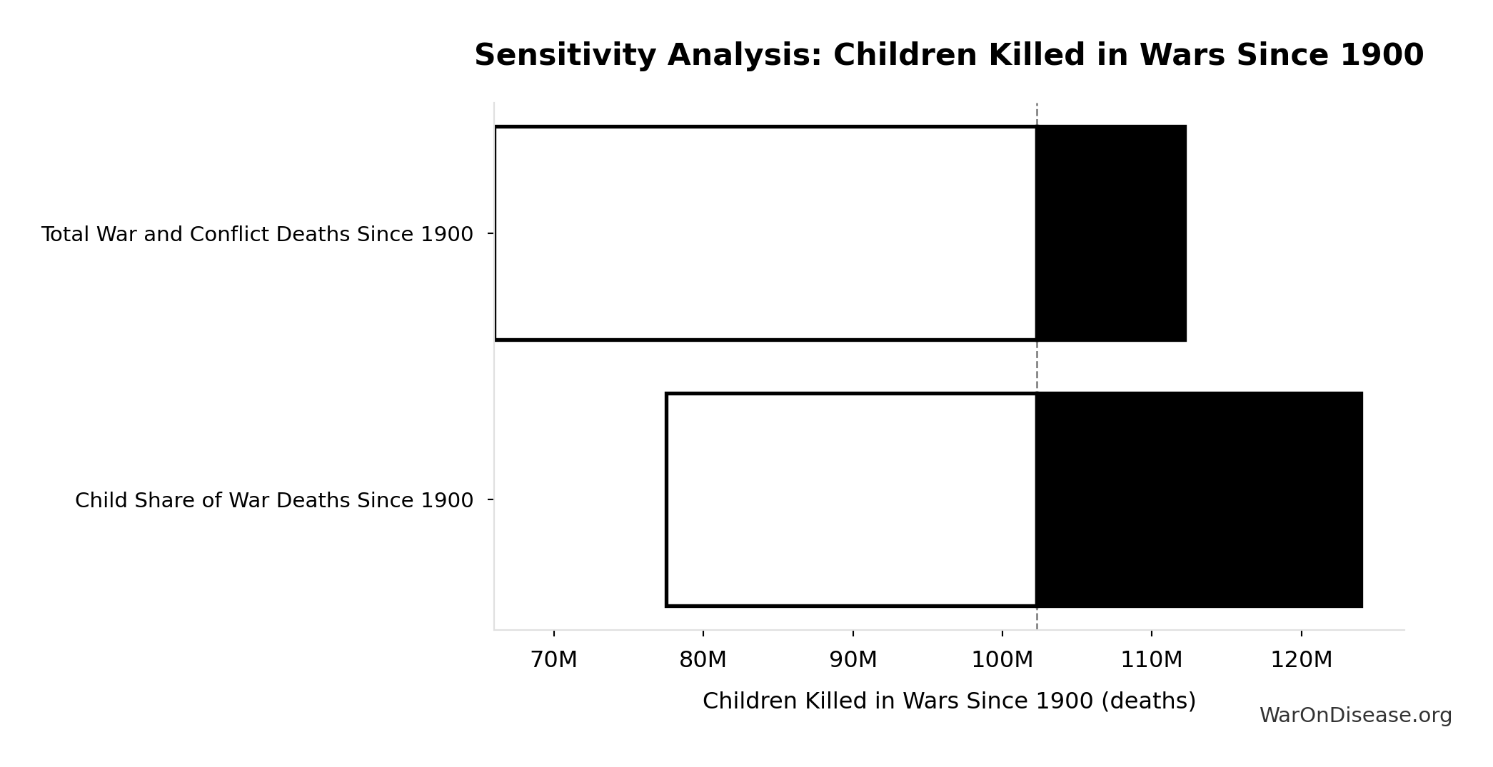 Child Share of War Deaths Since 1900: 33%
