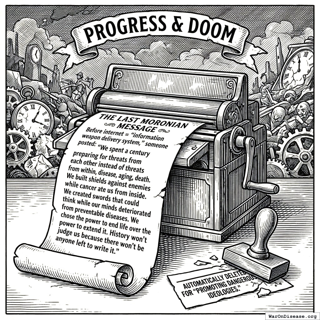 Disease killed most of the rest. Cancer took 10 million annually. Heart disease thrived in bunker life. 95% of their diseases remained uncured. The diseases didn’t need weapons. They just needed Moronians to keep ignoring them. Moronians were very reliable in this regard.