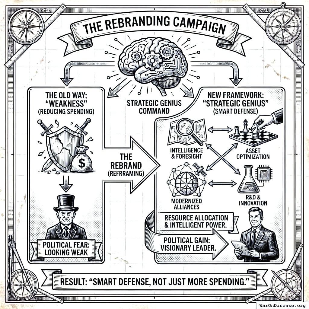 So you don’t frame this as “reducing military spending.” You frame it as:
