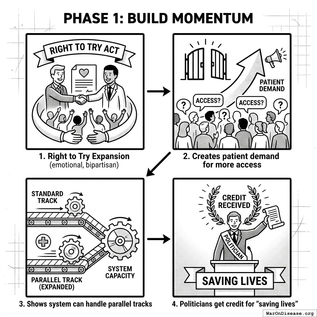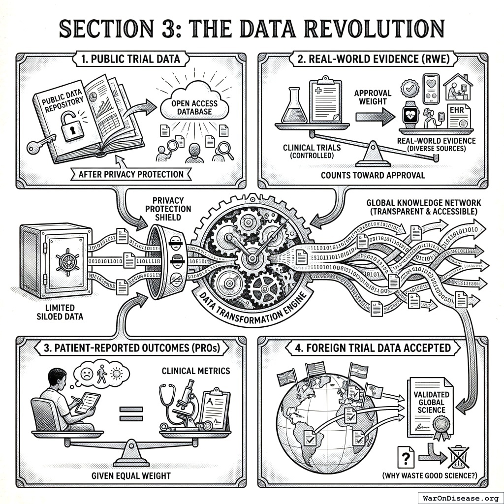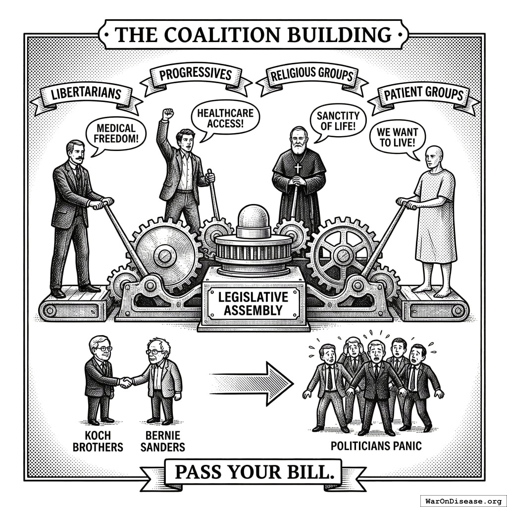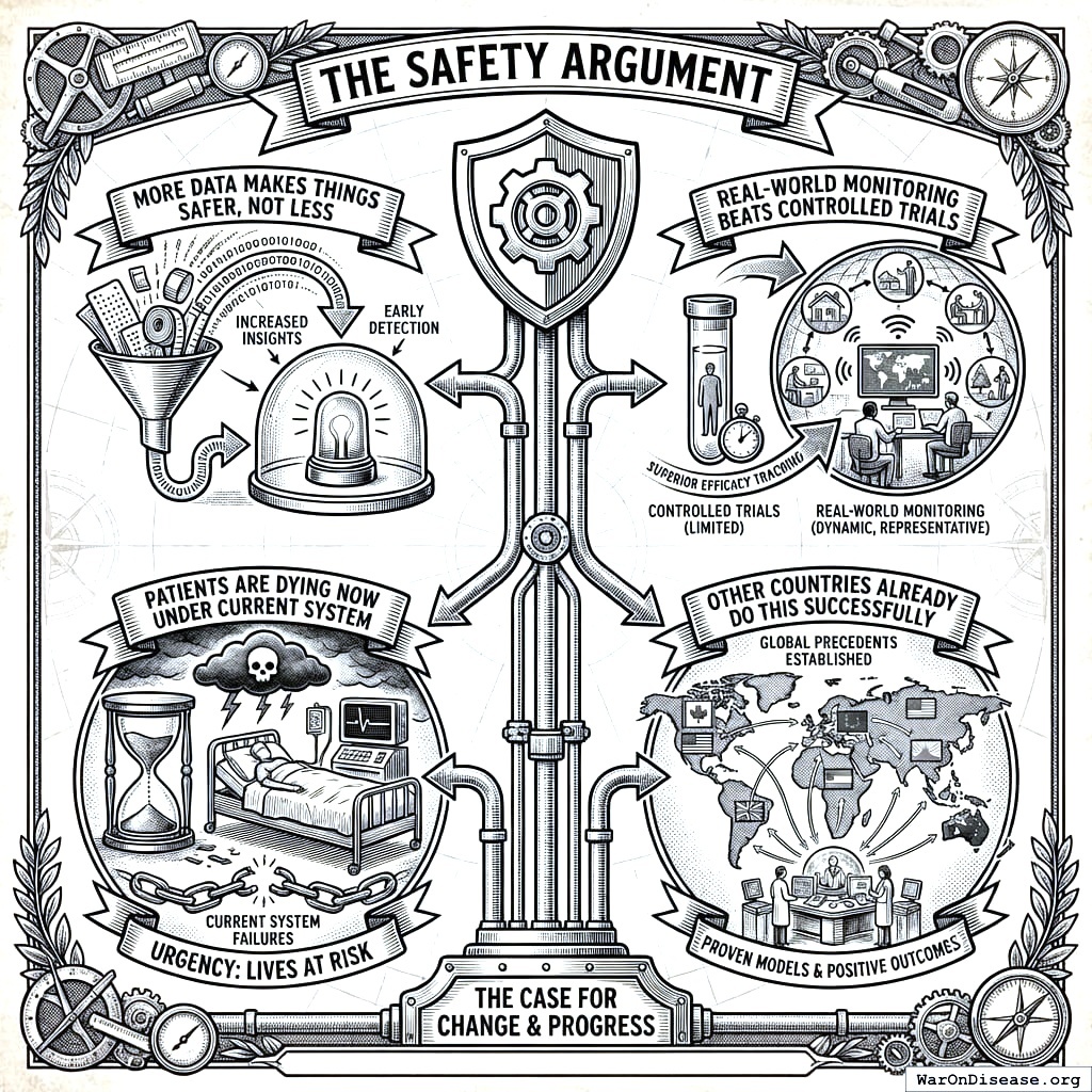 This act creates your decentralized FDA149,150. It builds a legal pathway for treatments to operate outside the FDA’s 17-year death march. Patients get choices. Researchers get freedom. People stop dying while waiting for approval.